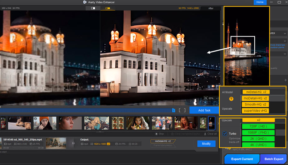 Select the suitable AI model, hit "Preview" for real-time comparison, and set the output resolution.