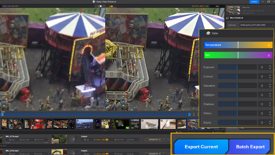 4. Can I adjust enhancement strength in Aiarty Video Enhancer?