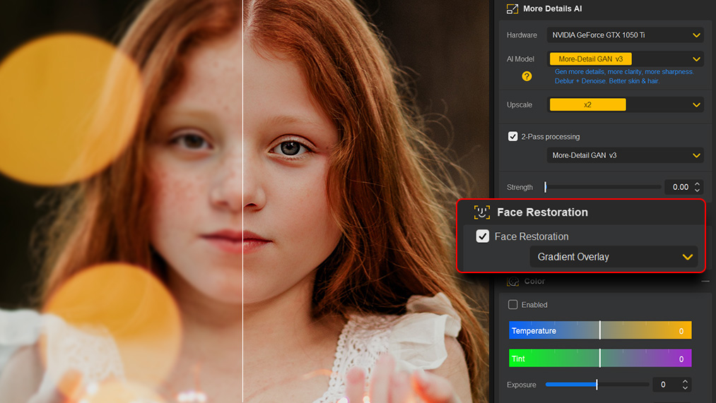 Your all-in-one desktop AI tool to denoise, sharpen, upscale, and restore images. Provide natural, texture-refining enhancements, batch upscaling (up to 32K), and color correction. Fix visual issues and bring low-quality photos back to life.