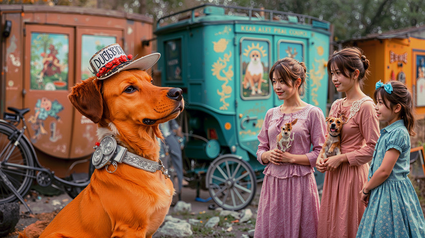 After adding the prompt “turn a dog into real”, the dog in the image transforms into a realistic golden retriever. Interestingly, the human subjects also undergo significant changes—their faces and outfits are completely altered.