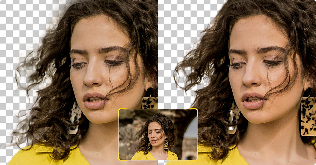 Aiarty free AI image remover delivers precise background removal for photography. Trained on realistic photo data, it accurately detects subjects, preserving hair, skin tones, soft edges, and handling tricky elements like low-contrast edges, veils, and glasses.