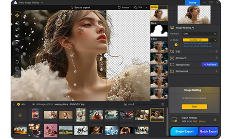 Absolutely. Aiarty Image Matting supports batch background removal for up to 3,000 images at once. It automatically detects objects and replaces backgrounds with solid colors, transparency, or custom images, making it ideal for users who need fast, high-volume processing.