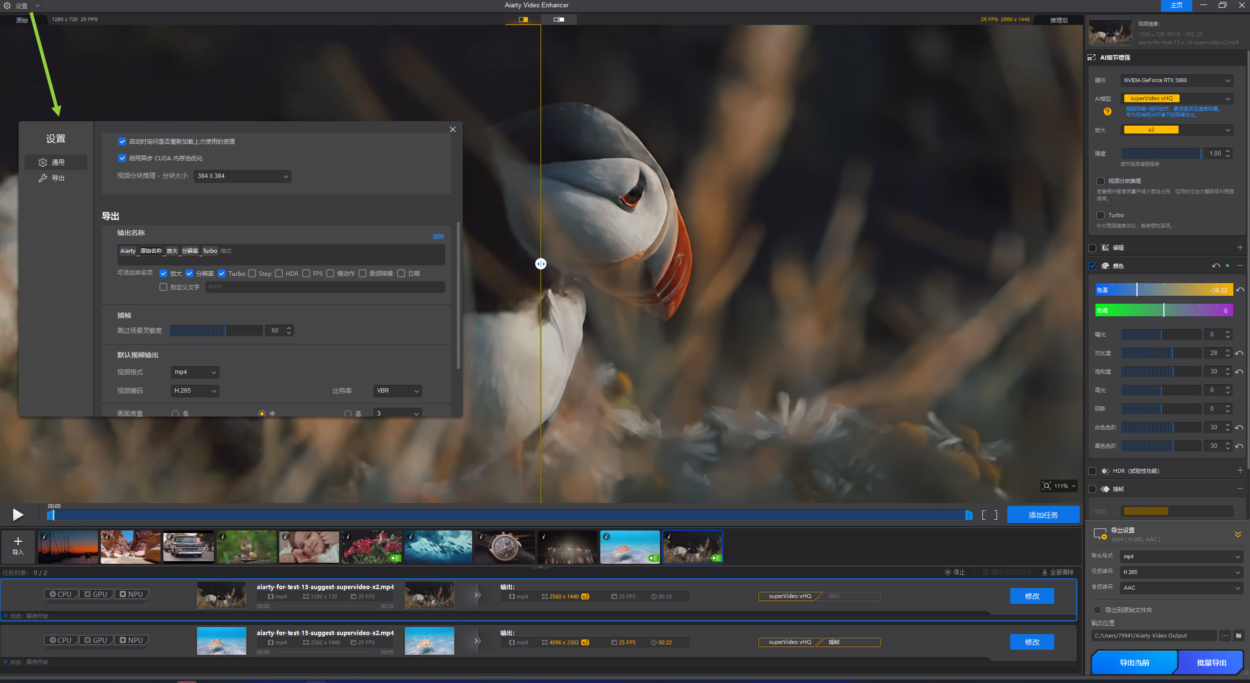 请根据你的核心需求(画质、速度或色彩)参考以下建议。无需在界面中开启所有功能;例如,仅进行视频放大时,通常不需要启用插帧或音频降噪。
