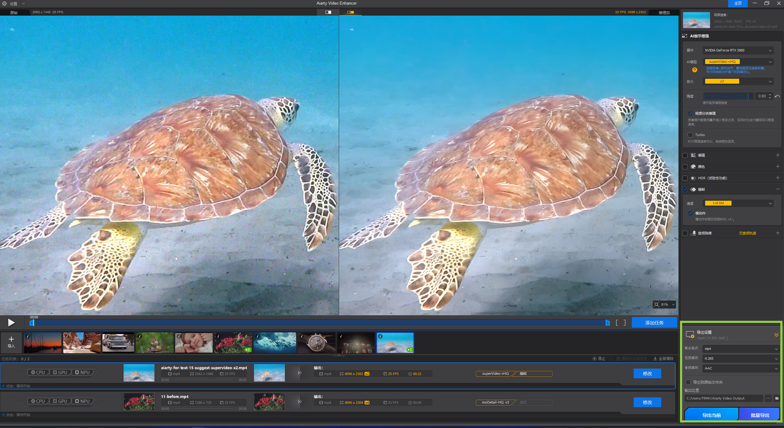 最终选择取决于你的视频素材本身。建议多尝试不同 AI 模型,找到最自然、最符合你画质需求的效果。