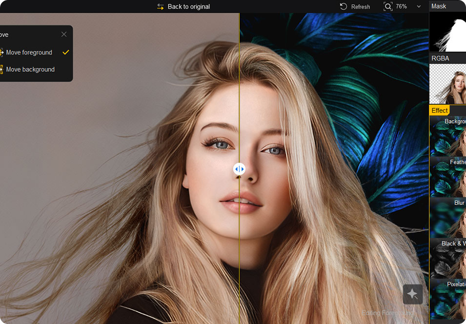 State-of-the-Art AI matting software for extracting foregrounds, merging with backgrounds, and achieving pixel-perfect results.