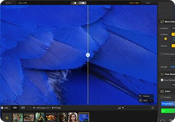 Denoise, deblur, and restore photos with faithful texture and natural clarity. Upscale images to 4K/8K/32K with the right detail.