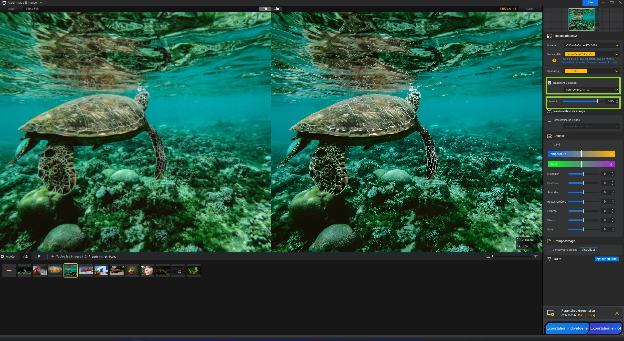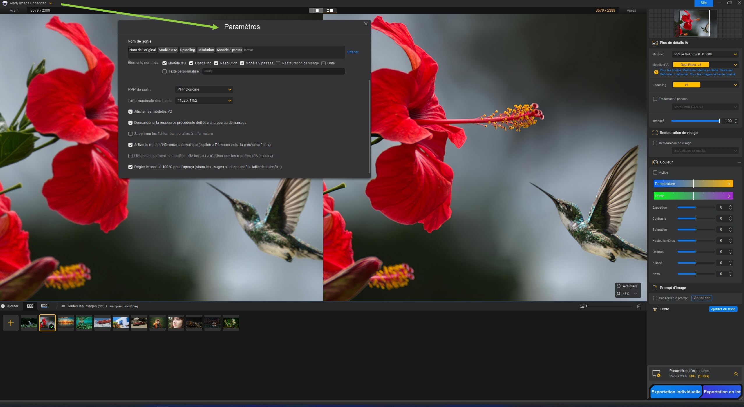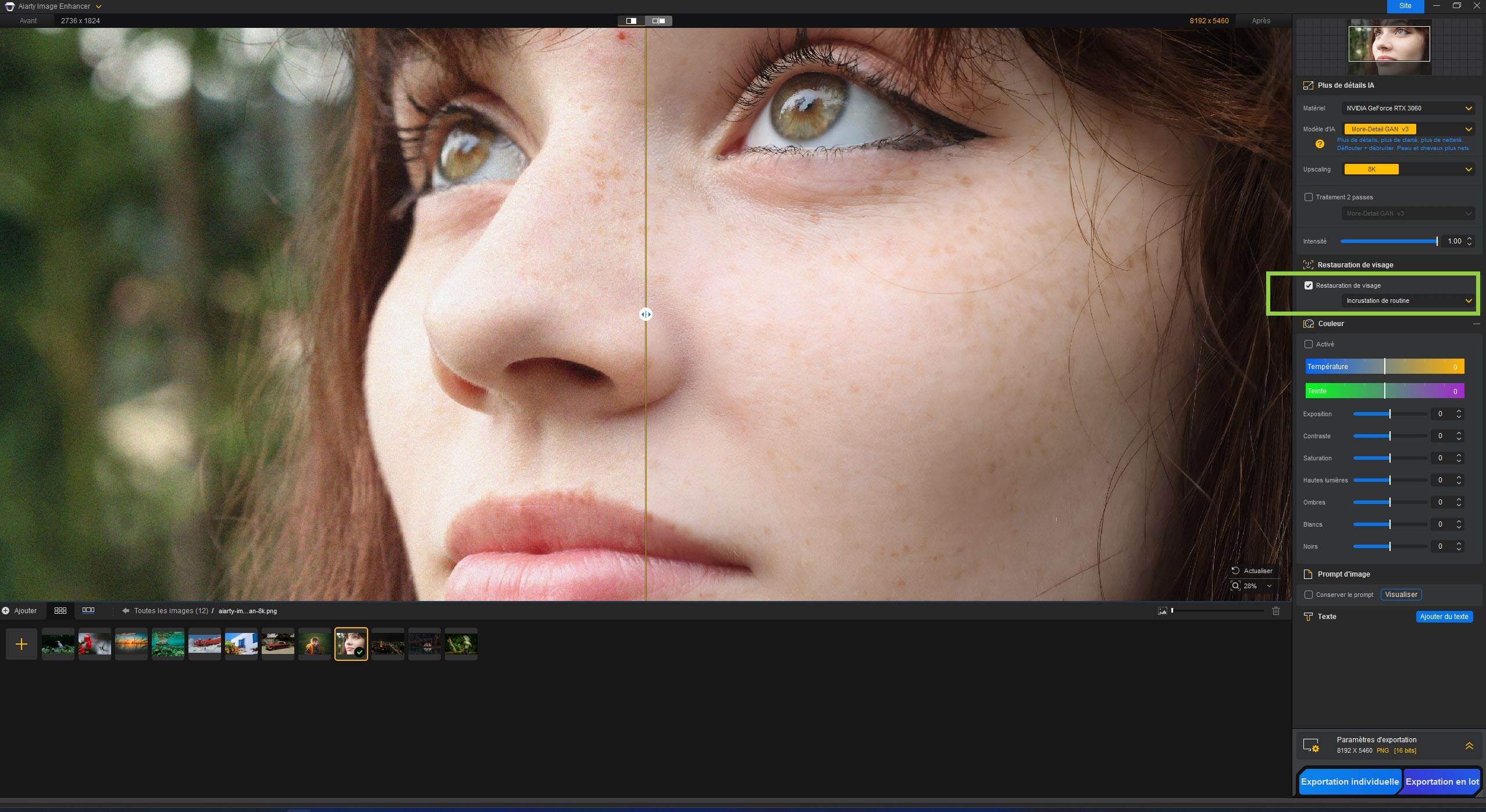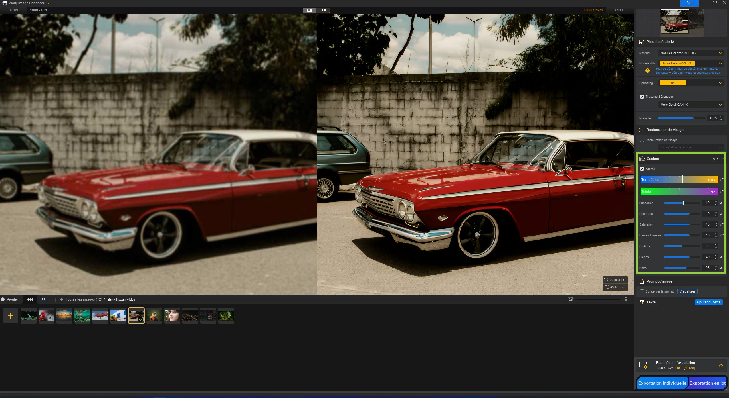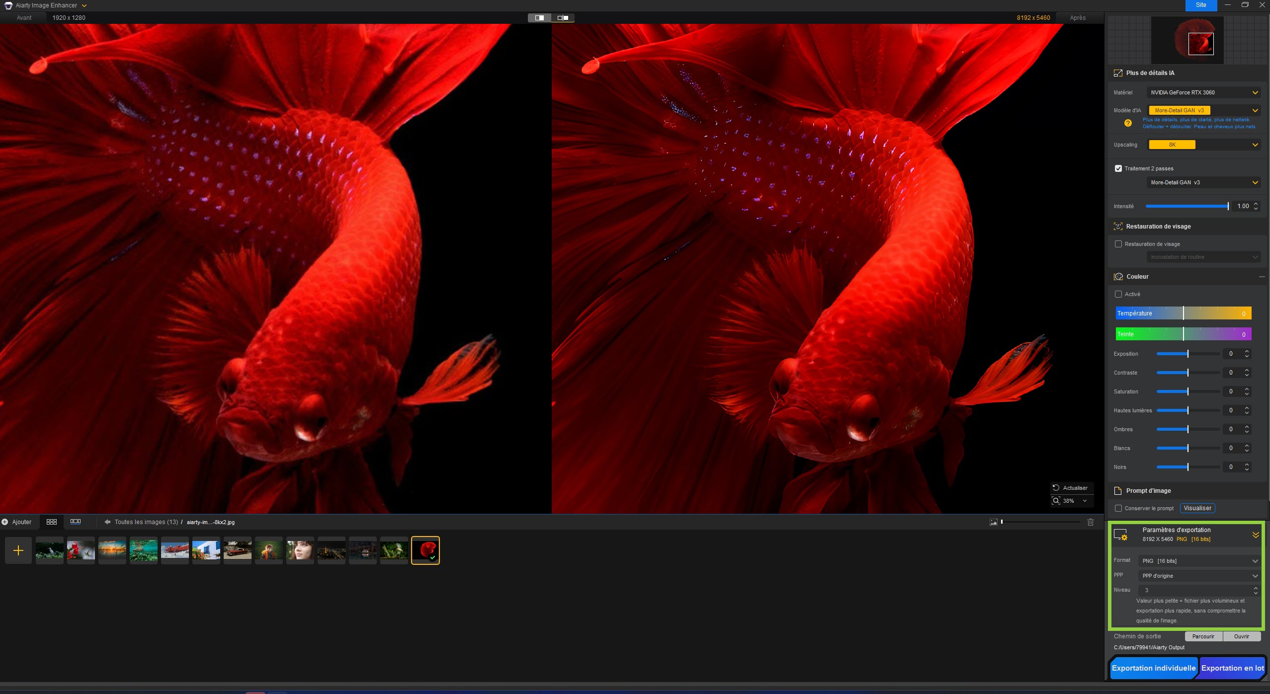Sachez que certaines images peuvent nécessiter des réglages différents. Vous pouvez réajuster les options dans les Paramètres ou directement sur le panneau de travail avant d’exporter vos images pour obtenir les meilleurs résultats.