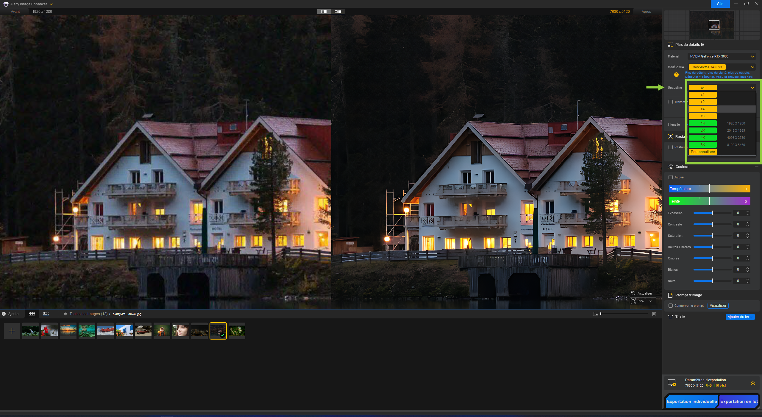 ▪ Évitez de passer directement à la plus grande mise à l'échelle: parfois, une mise à l'échelle étape par étape (par exemple, ×2 puis un autre ×2) peut donner de meilleurs résultats qu'une mise à l'échelle directe ×4/x8 ou 4K/8K.