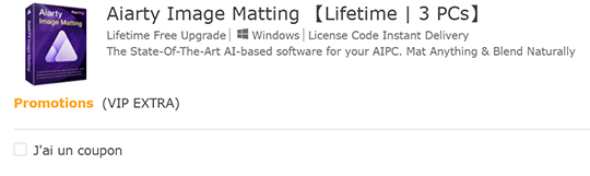 Les coupons par défaut sont appliqués automatiquement lors du passage à la caisse. Si vous souhaitez utiliser un autre code, cliquez sur "Acheter", cherchez "J'ai un code coupon", entrez votre code et cliquez sur l'icône de rafraîchissement. Votre réduction supplémentaire sera appliquée instantanément.