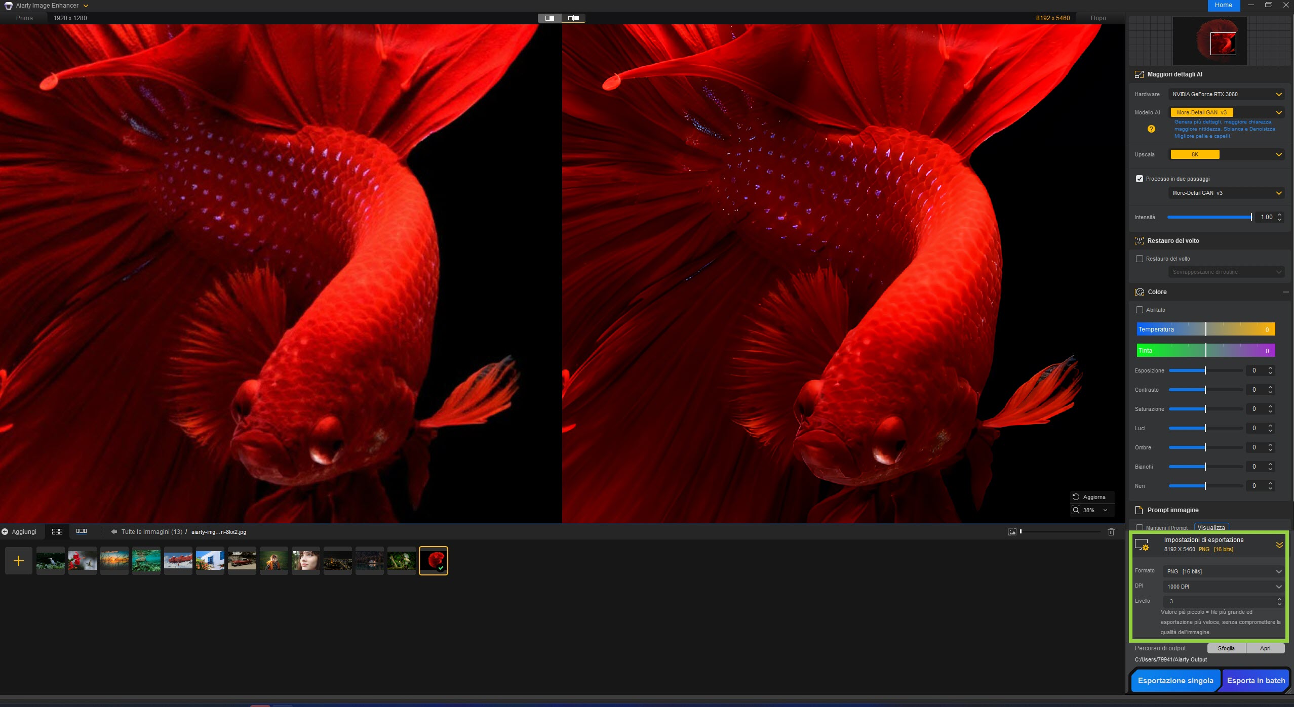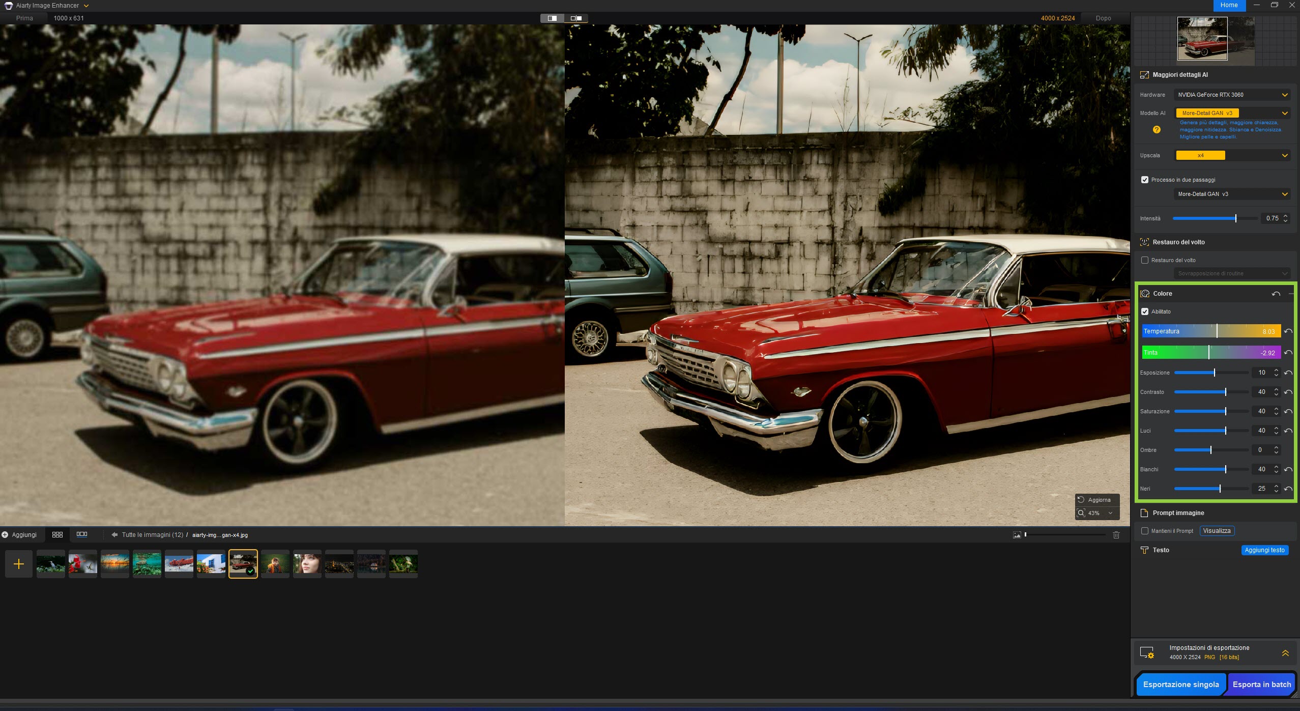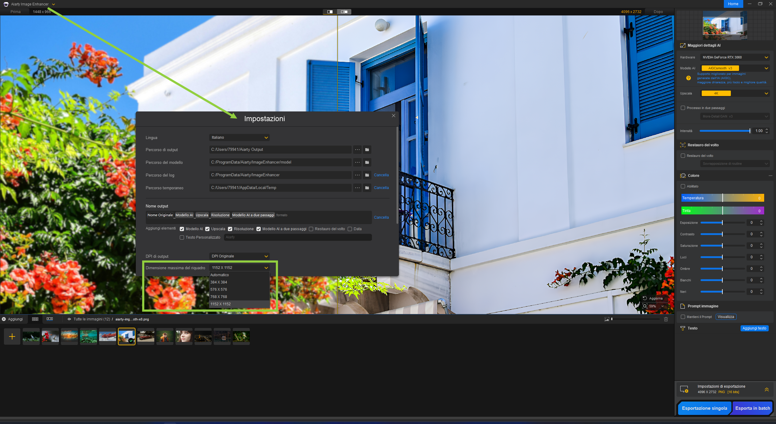 Ricorda che alcune immagini potrebbero richiedere impostazioni diverse. Puoi modificare le opzioni nelle Impostazioni o direttamente nel pannello di lavoro prima di esportare le immagini per ottenere i migliori risultati.