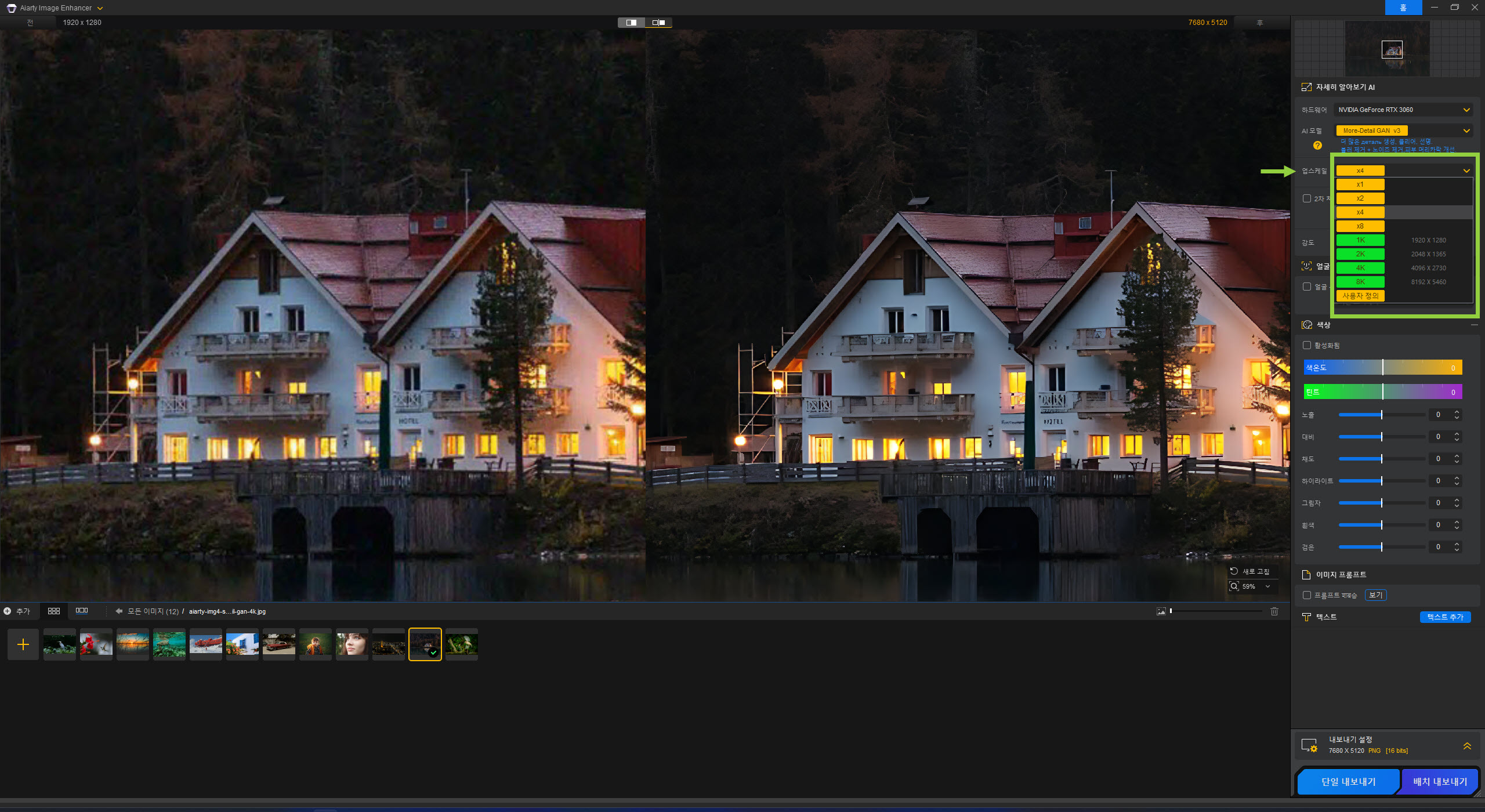 ▪ x1 업스케일 시도: 이미 고해상도인 이미지/사진의 경우, 원본 크기를 유지하면서 이미지 문제를 수정하기 위해 x1을 사용하십시오.