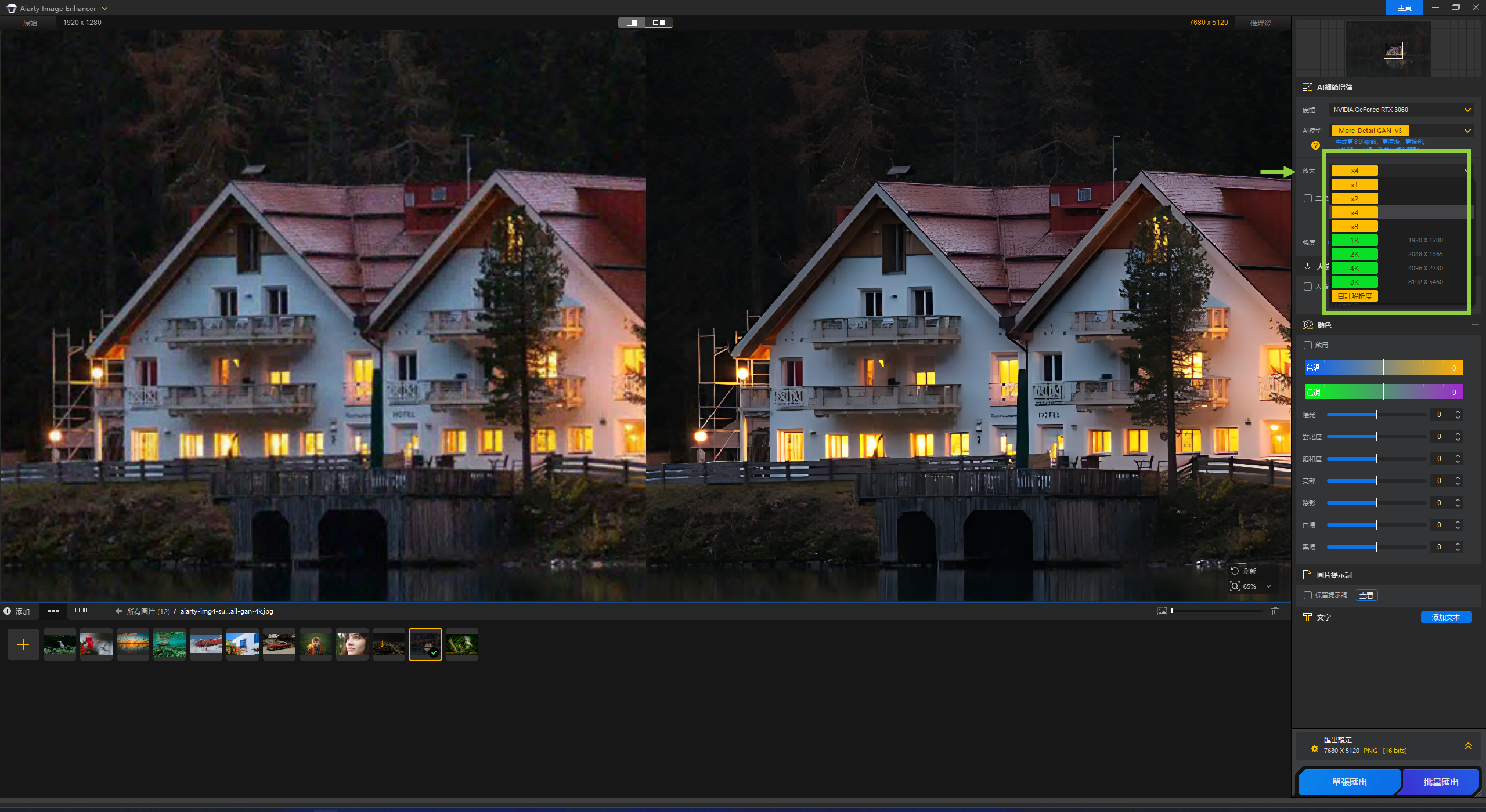 ▪ 避免直接使用最大放大倍率: 有時分階段放大(例如先×2再×2)比直接×4/×8或選擇4K/8K放大能產生更佳效果。