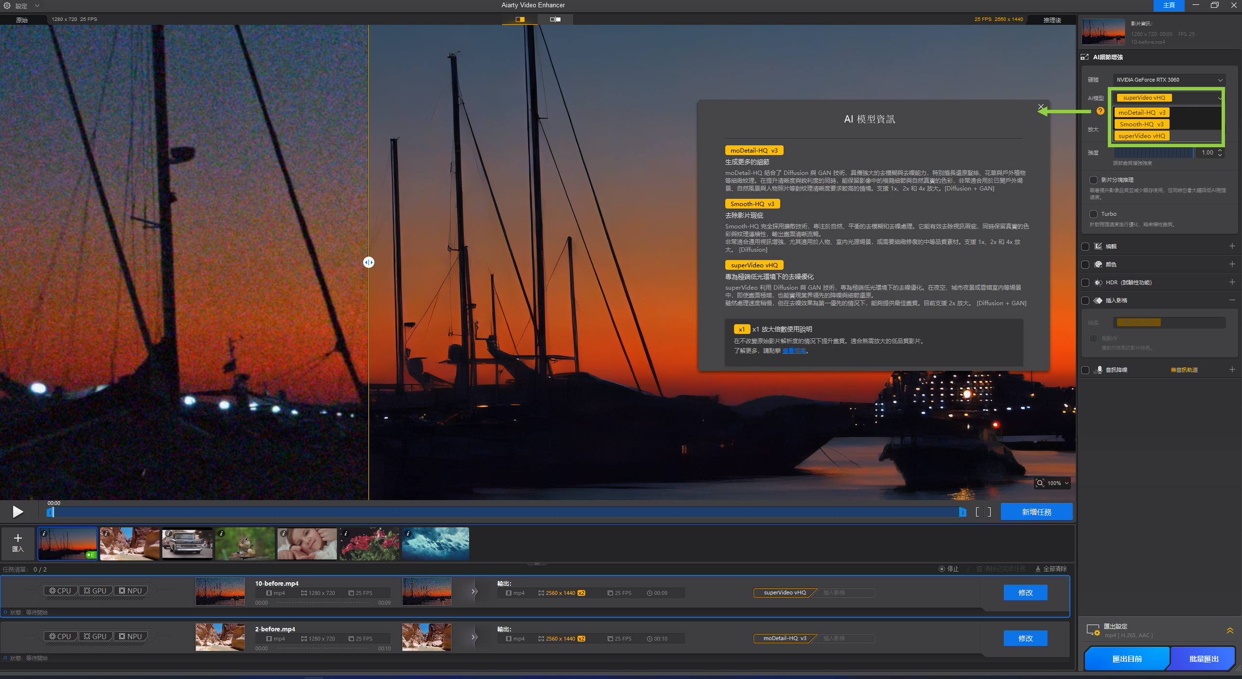 許多新用戶一開始會使用 Aiarty Video Enhancer 的預設 AI 模型,接著便會疑惑:「哪一個 AI 模型最好?該如何選擇?」其實並不存在適用於所有情境的「最佳模型」。每一款模型都針對不同需求而設計: