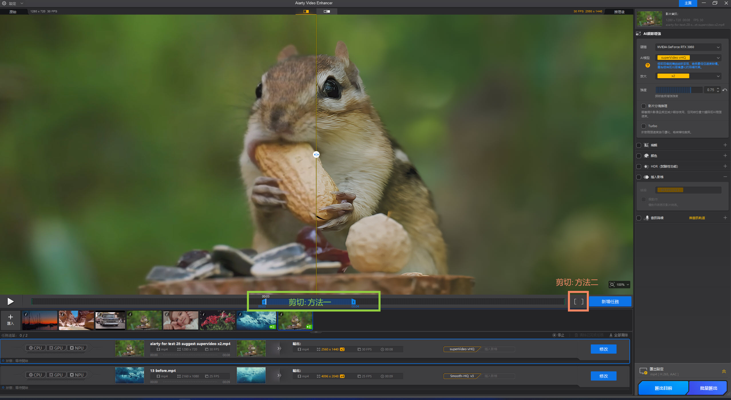 在正式輸出前,先從影片中選取 5–10 秒片段進行測試,可大幅節省時間。您可使用以下兩種方式: